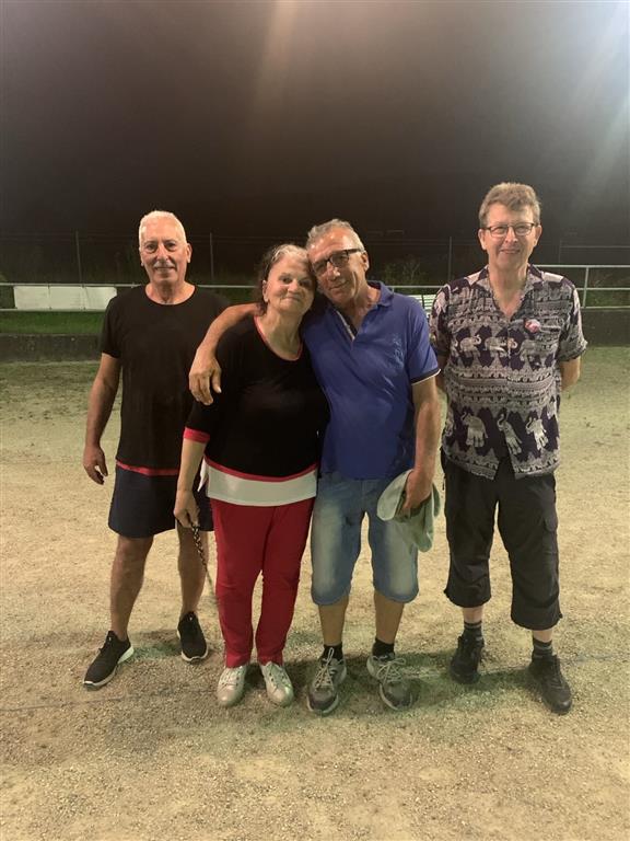 Nach insgesamt drei Spielen im Doublette- Supermeléemodus kämpften gegen 22 Uhr Helmut K. mit Ramazan gegen Sieglinde (Siggi) und Nissan um den Sieg. Überlegen sicherten sich Ramazan und Helmut den Sieg des Abends. Gerne nahmen sie als Siegprämie einen guten heimischen Boxbeutel Rotwein und die Zweitplatzierten einen Weißwein vom Vorstand entgegen.
